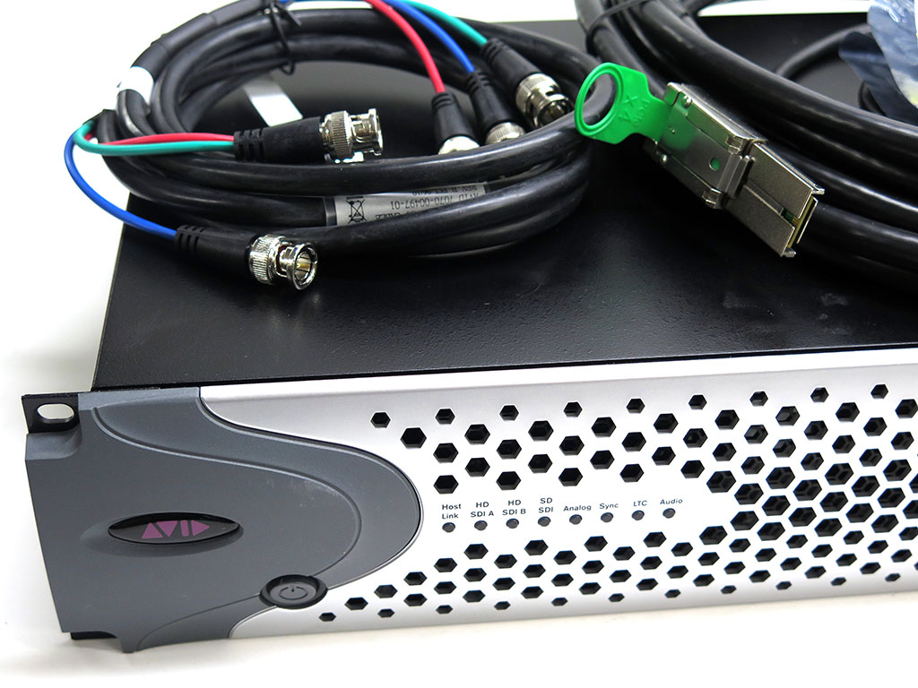 PCIe host cable, Avid brand component BNC cable, power cable.