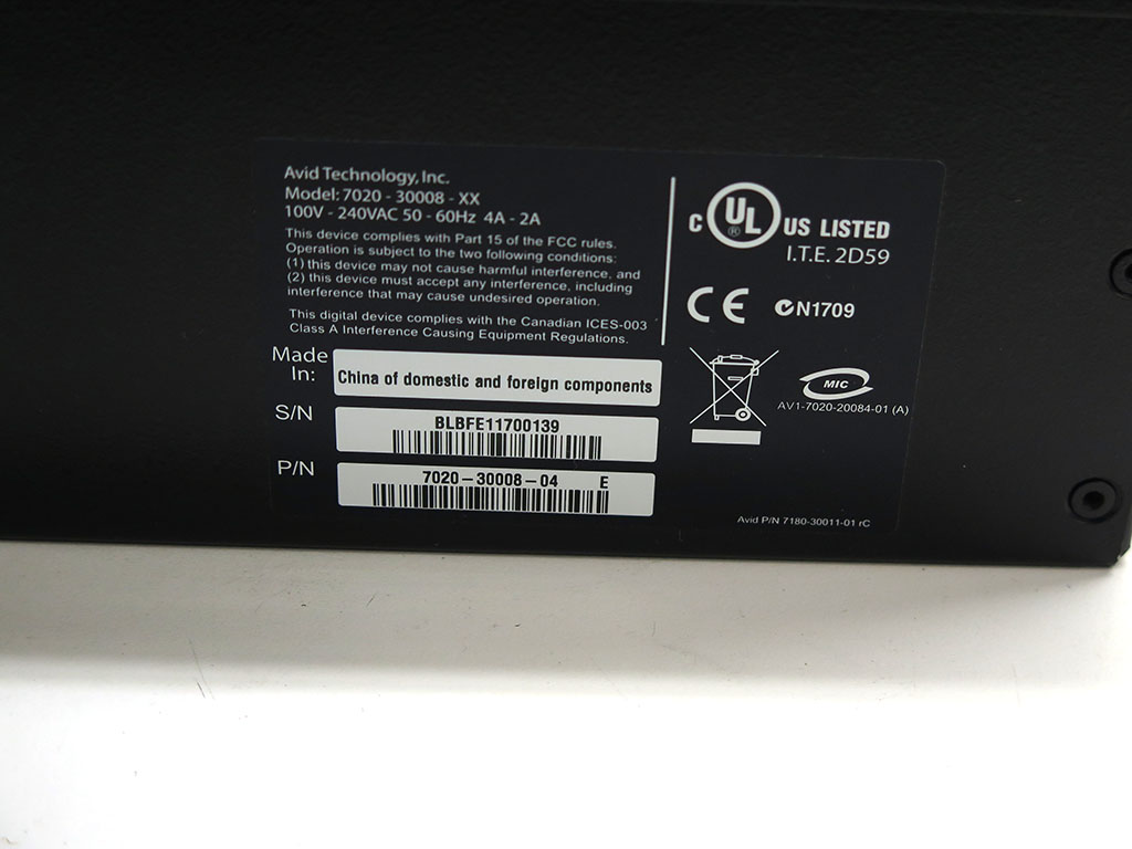 unit that works with Avid Media Composer, Symphony, and Newscutter.