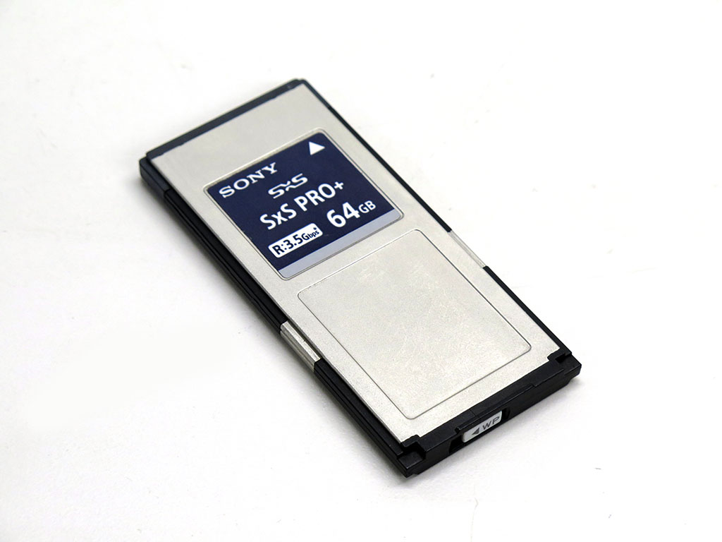 SxS Pro and Pro+ cards. 64GB cards allow up to 60fps ProRes 444.